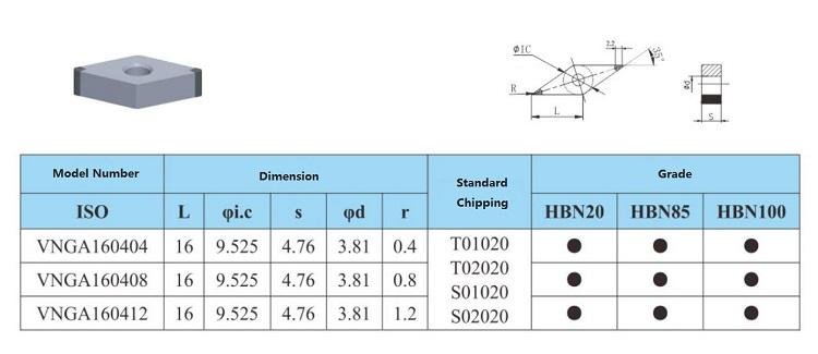 Nombre del producto:CNGA120412-4N CBN Insertar herramientas de torneado