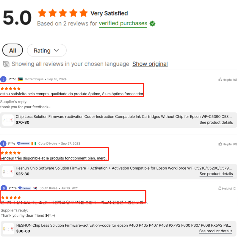 Código de activación de firmware de solución sin chip HS para impresoras Epson T252 T220 T2531 Work Force WF- 2851 2850 2860 2861 2750 2650