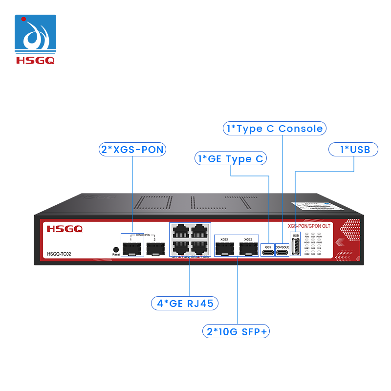 2*XGS-PON/XG-PON/GPON+4*GE RJ4+1*GE Tipo-C+2*10G SFP+ y 1* USB 2.0