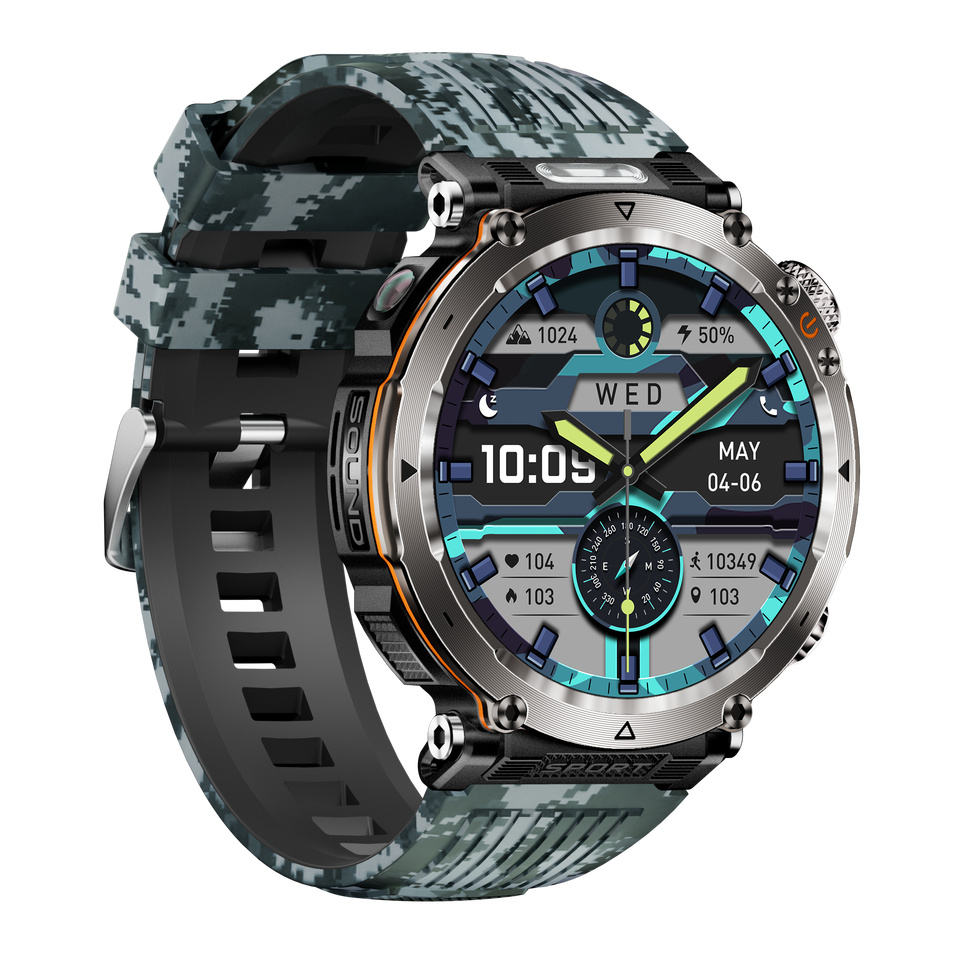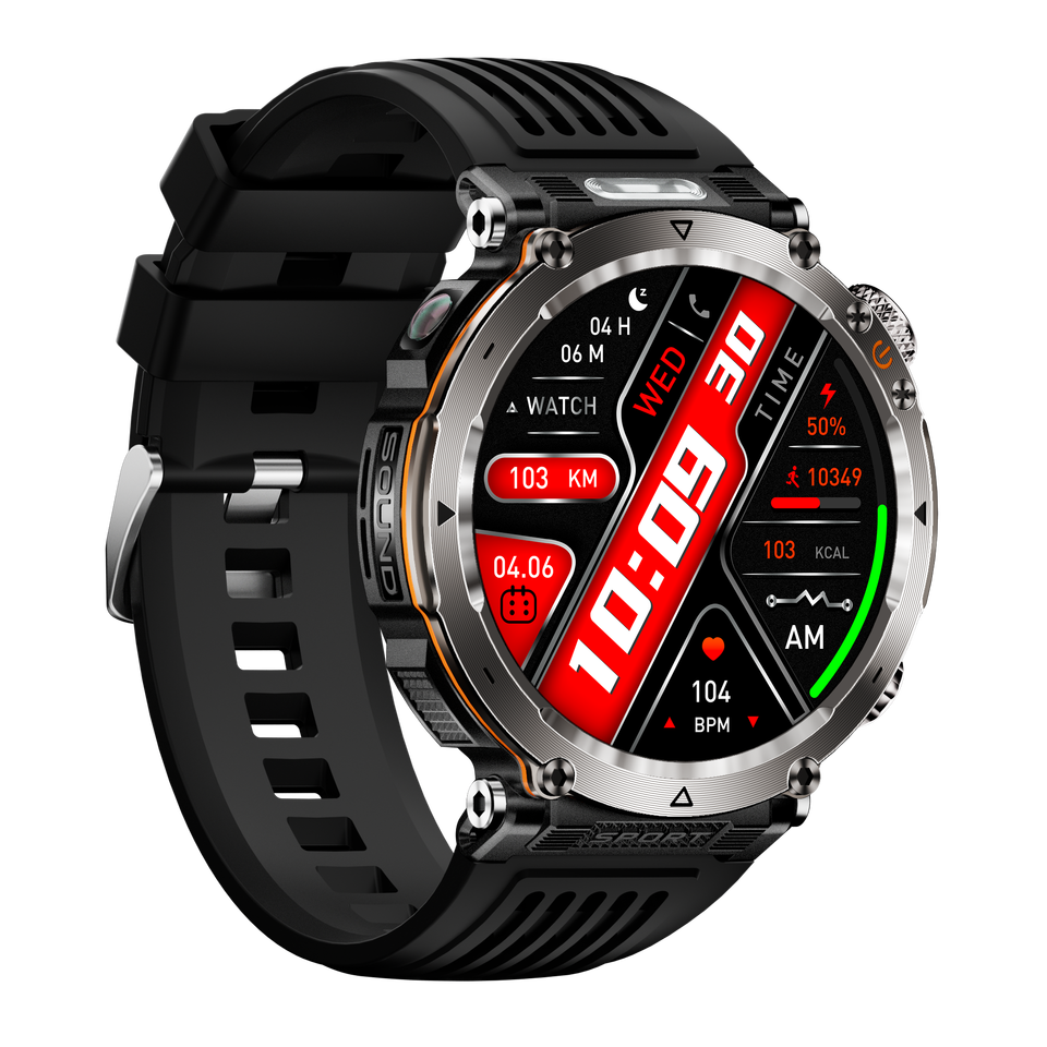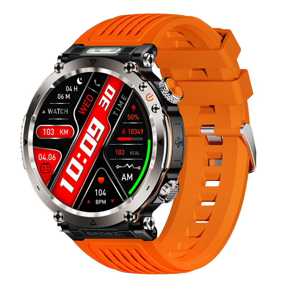 Reloj Inteligente HT30 con Pantalla Redonda de 1.7 Pulgadas, Llamadas por BT, Brújula, Linterna, 600mAH, Más de 100 Modos Deportivos, Resistente al Agua IP68, Reloj Inteligente para Exteriores