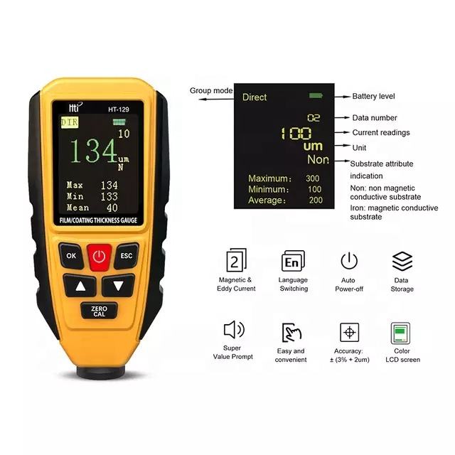 Mini medidor de espesor de pintura de recubrimiento Digital portátil HTI, medidor de pintura de coche