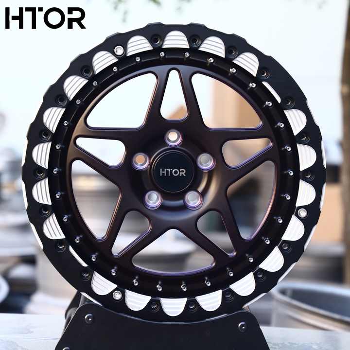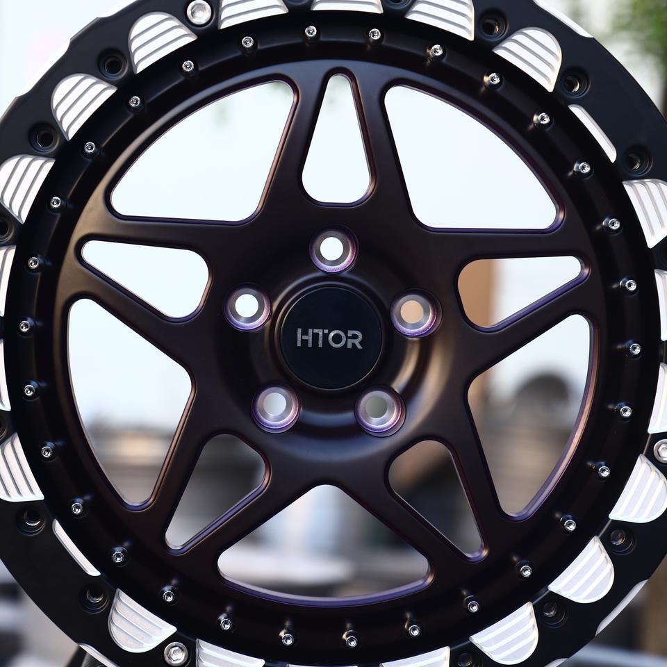 Rines HTOR de 15x10 Pulgadas 5x114.3 con Beadlock Forjado para Carreras Todoterreno, Color Negro y Morado, Compatibles con Wrangler YJ TJ Cherokee XJ Ranger