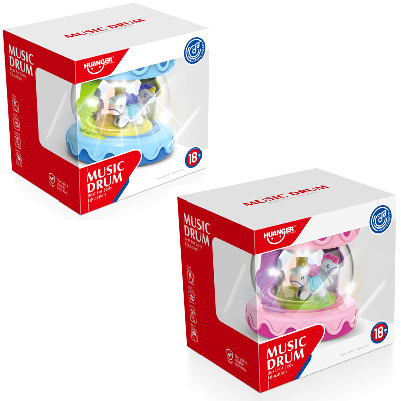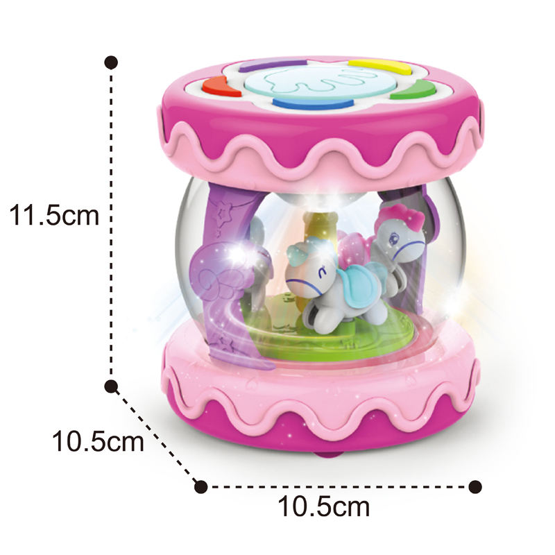 HUANGER Nuevo Tambor Musical Educativo Multifuncional para Bebés, Tambor Giratorio, Carrusel Musical, Tambor de Mano, Juguetes para Bebés