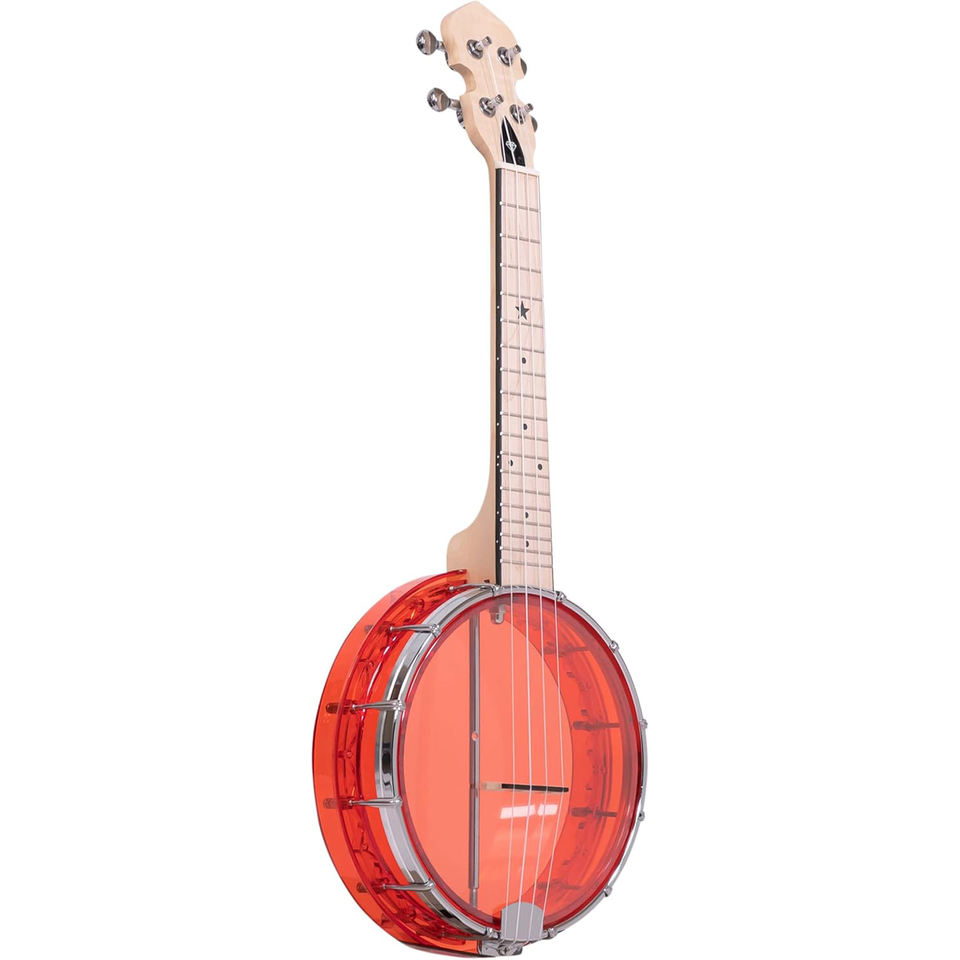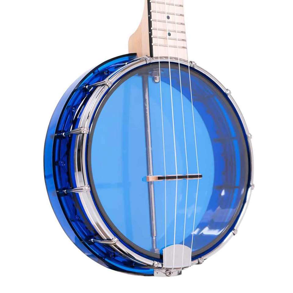 HUASHENG Ukelele de banjo pequeño de 4 cuerdas con kit para principiantes, borde acrílico de 8 ", afinadores sellados estilo guitarra