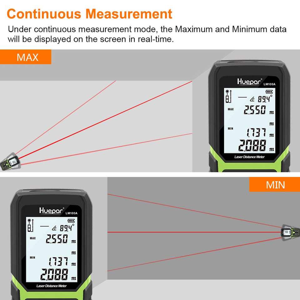 Medidor de Distancia Láser HUEPAR LM120A con Batería Recargable de Iones de Litio, Sensor de Ángulo Eléctrico, Modos de Medición Múltiples