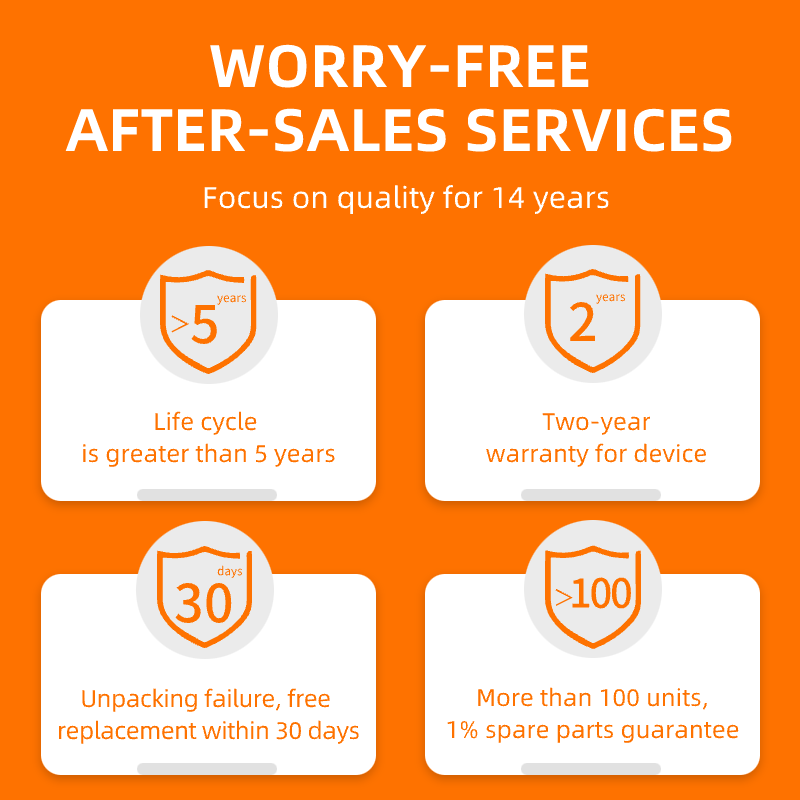 Servicio post-venta:Centro de llamadas y en línea de apoyo técnico, La capacitación en el lugar de inspección y, repuestos gratis, Devolución y reemplazo, Reparación