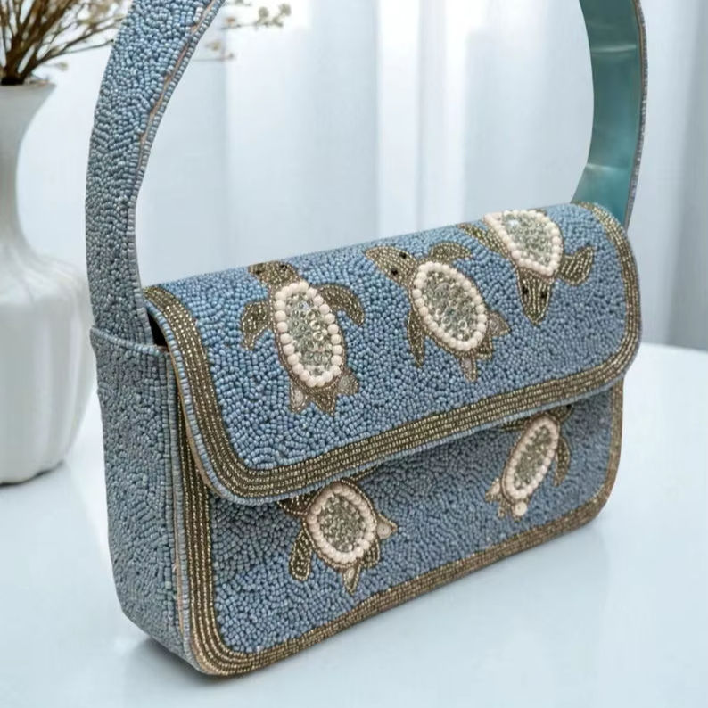 Bolsos de Mano de Noche para Novia, Diseño Clásico, Hechos a Mano por HUSSAIN CRAFTS, con Bordado de Cuentas de Cristal, Colores Mezclados, Algodón