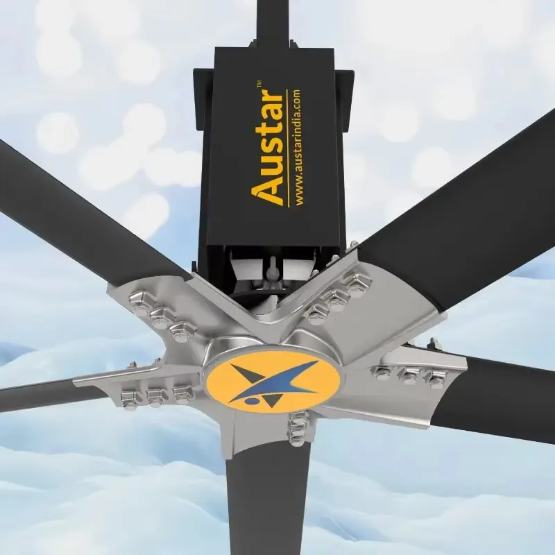 Ventilador de Techo HVLS de Gran Volumen y Baja Velocidad con 6 Aspas para Almacén, Gimnasio, Taller, Fábrica, Color Negro