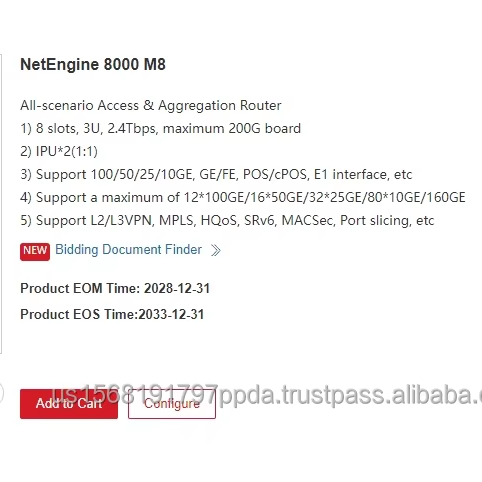 Licencia de Software para Router IP Avanzado HW 88035YMF N1-N8KM8A-LIC N1-NetEngine 8000 Serie M8 para Uso en Telecomunicaciones NE8000 M8