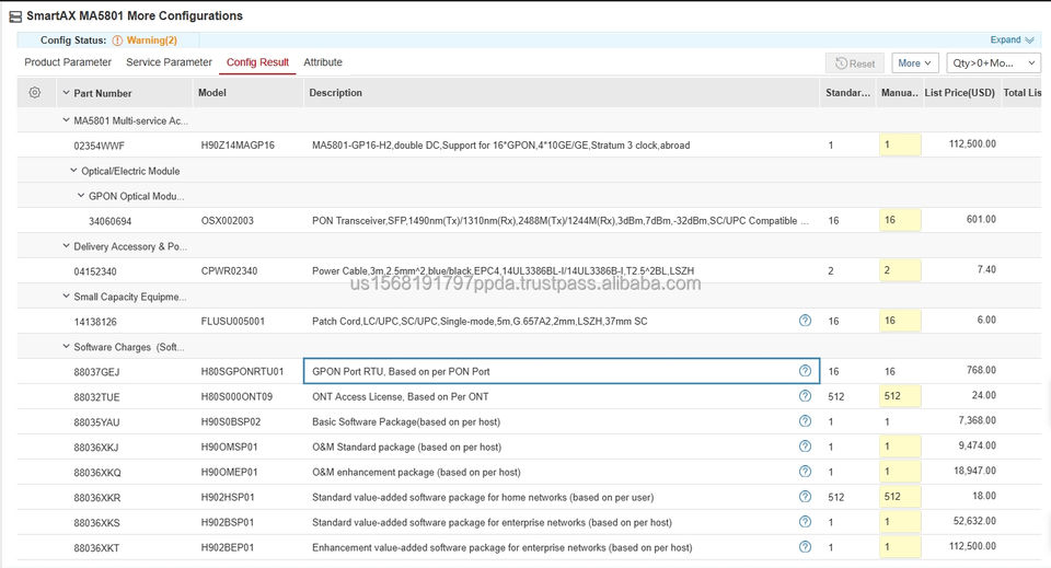 HW 88037GEJ H80SGPONRTU01 Puerto GPON RTU OLT para Red FTTX SmartAX MA5801