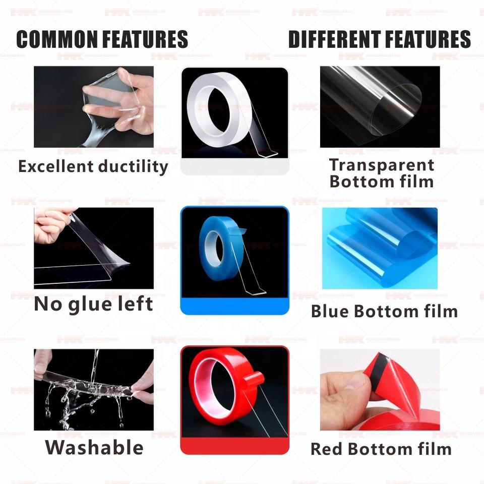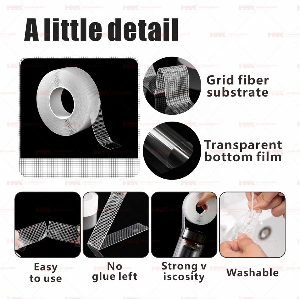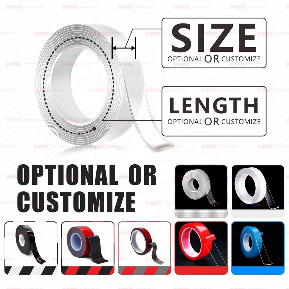 Cinta de gel transparente de doble cara reutilizable personalizada de fábrica HWK, cinta adhesiva acrílica fuerte para decoración del hogar, Material PET, nano cinta