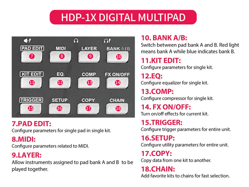 HXM HDP-1X Octapad incluye soporte metálico, 8 pads — multipad profesional de percusión, instrumento