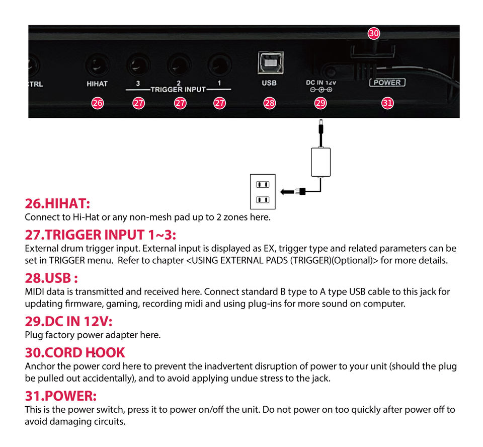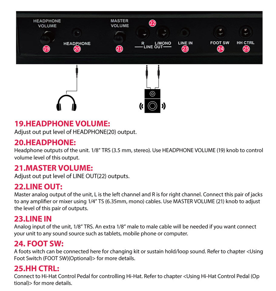 Efecto de sonido:Reverb, 8 preajustes con nivel y tiempo ajustables