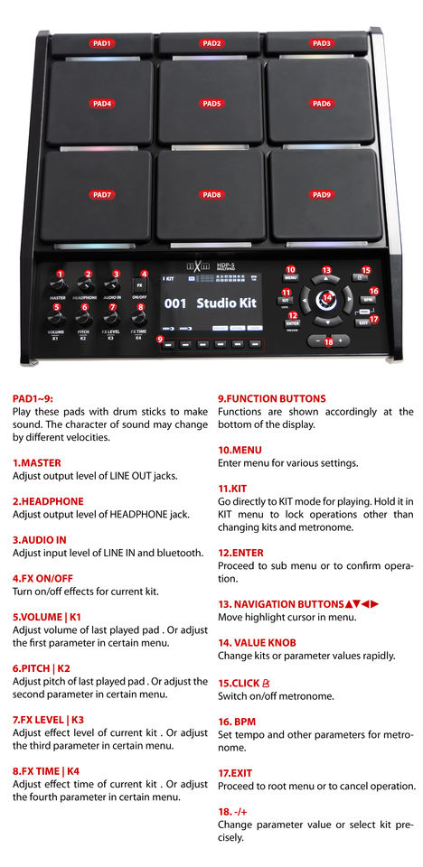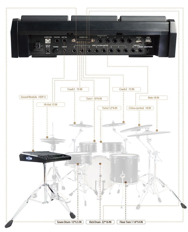 Configuración:9 Pads Integrados + 14 Entradas de Gatillo