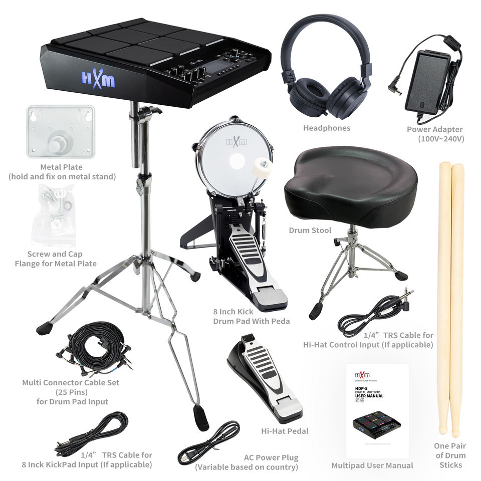 Paquete HXM HDP-5 Multipad con Soporte de Metal Incluido, Octapad Profesional de 8 Pads, Instrumento de Percusión, Batería Eléctrica Profesional