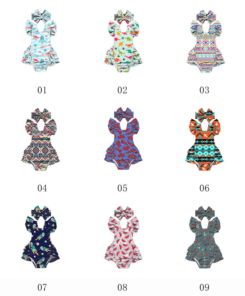 HY-045-ZXL Ropa para Bebés, Vestido con Volantes, Espalda Descubierta, Tirantes, Mono con Estampado de Fresas para el Verano