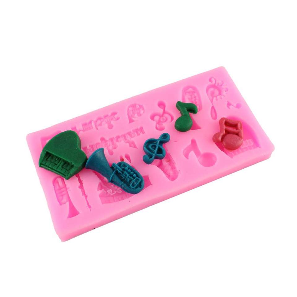 HY-molde de silicona para decoración de pasteles, instrumentos musicales, notas, dulces