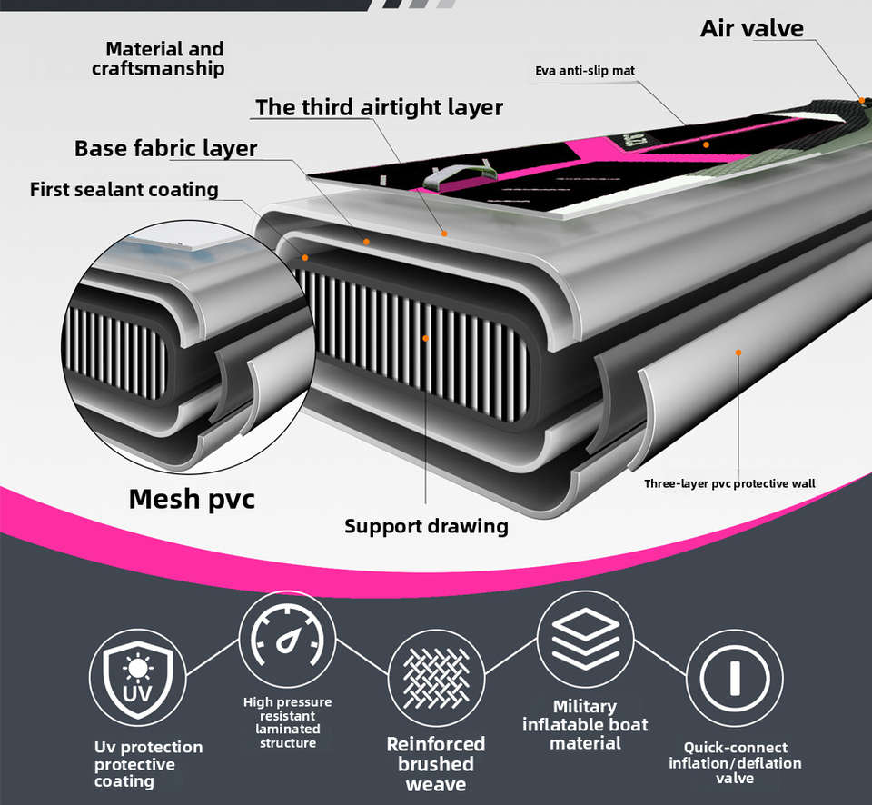 Material EVA PVC: La combinación de materiales EVA y PVC garantiza durabilidad y un agarre cómodo, lo que lo hace ideal para diversos deportes acuáticos.