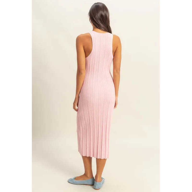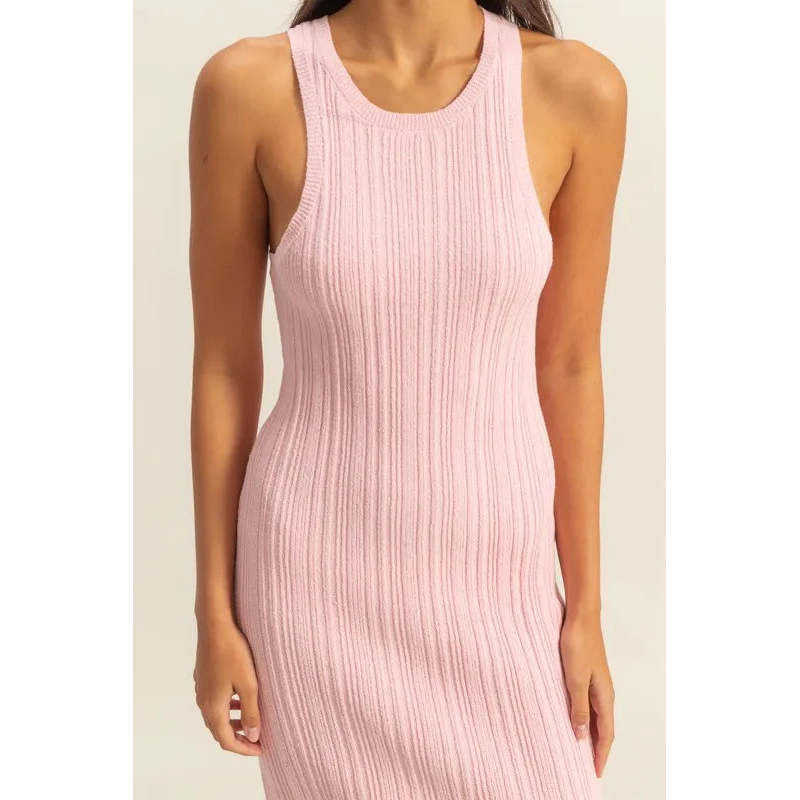 Vestido de punto acanalado ajustado de cuello redondo HYFVE SOFT PINK, talla S, variantes realizadas a mano