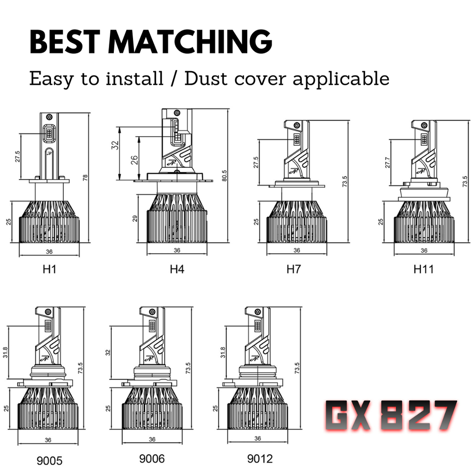 Base:H1 / H4 / H7 / H8 / H9 / H10 / H11 / 9005 / 9006 / 9012 / 880 / 881