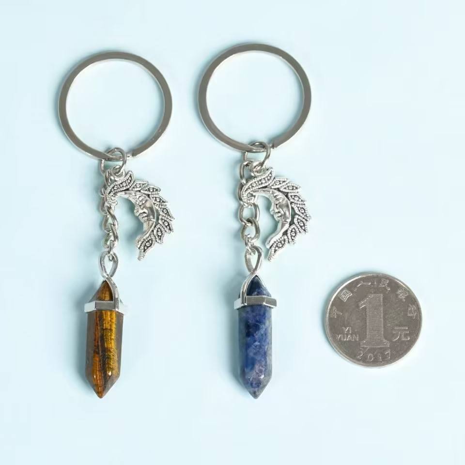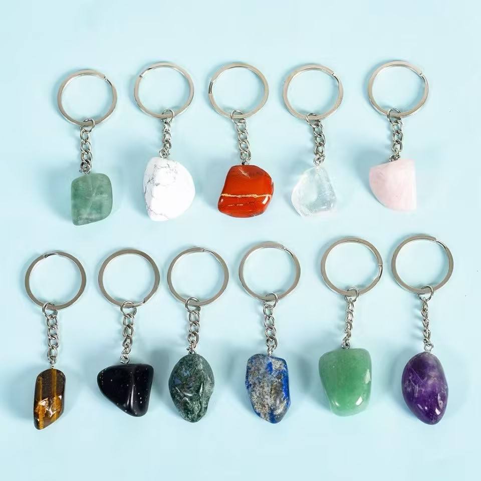 HZ logotipo personalizado llavero de piedra de bambú cristales de cuarzo Natural piedras preciosas curativas a granel al por mayor para regalo