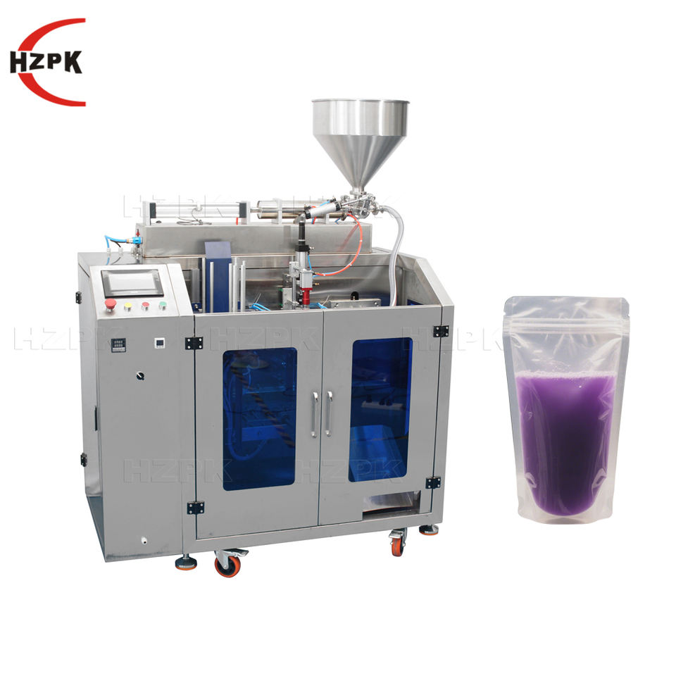 Máquina de Envasado HZPK para Champú, Salsa de Tomate, Miel, Aceite Comestible, Yogur, Bolsas Preformadas con Cierre Ziplock, Máquina de Llenado y Sellado de Bolsas Verticales