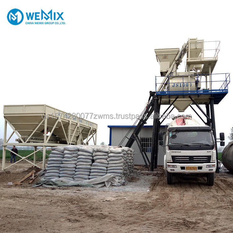 JS1000 Concrete Mixer, PLD1600 Aggregate Batcher, Screw Conveyor, Cement Silo, centralized control systemLos componentes principales.