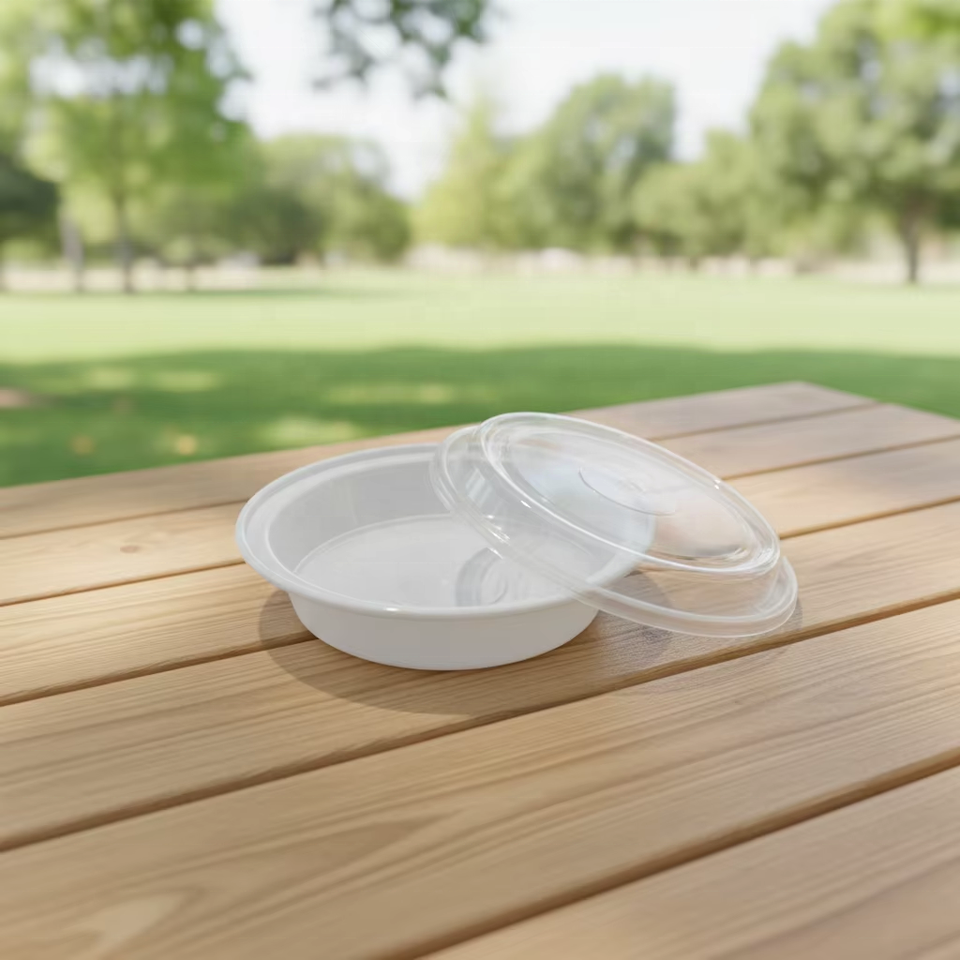 Recipientes Redondos Desechables de Plástico PP para Alimentos con Tapa, Aptos para Microondas, de Alta Calidad, para Preparación de Comidas