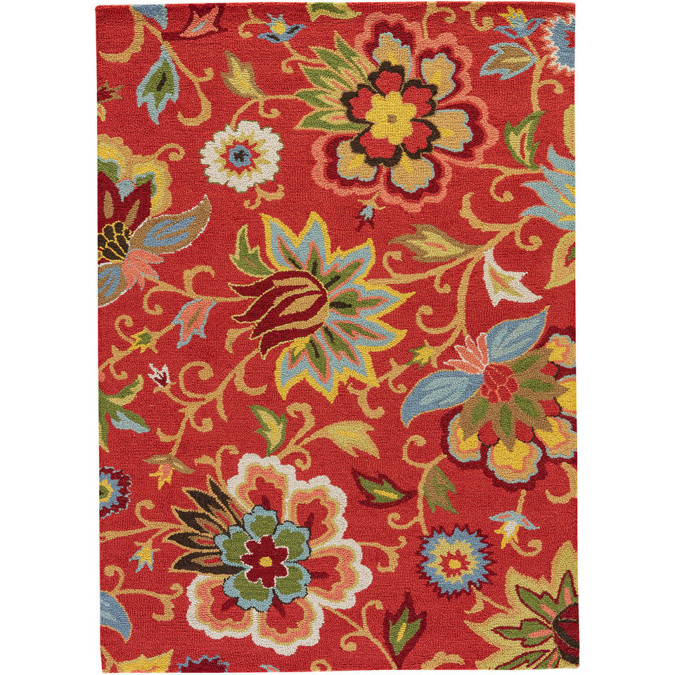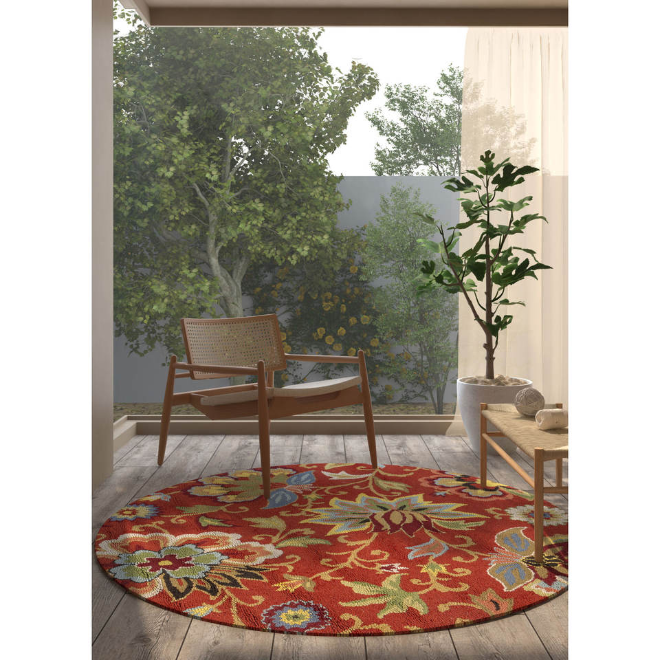 Alfombra de Lana Floral Hacienda Roja y Naranja, Hecha a Mano, para Sala de Estar y Pasillo, 10 mm de Grosor, para Adolescentes - Jaipur Rugs ZA