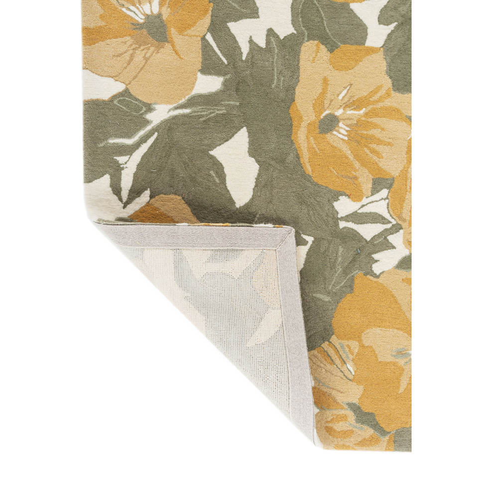 Alfombras de Lana Boho Hechas a Mano Hacienda Green Top-350 con Patrones Florales Rectangulares para el Hogar, Sala de Estar, Entrada, Dormitorio y Pasillo