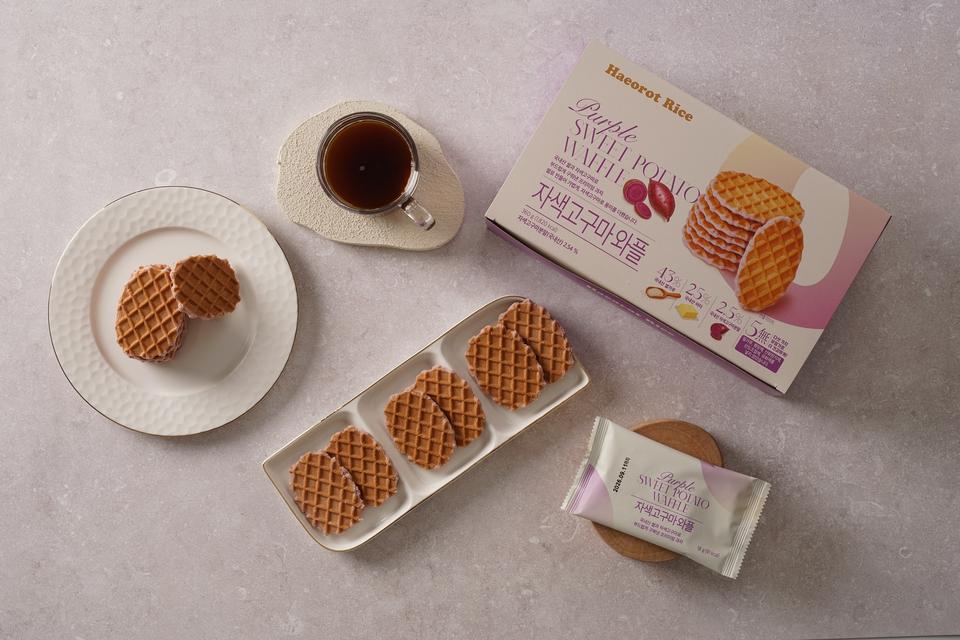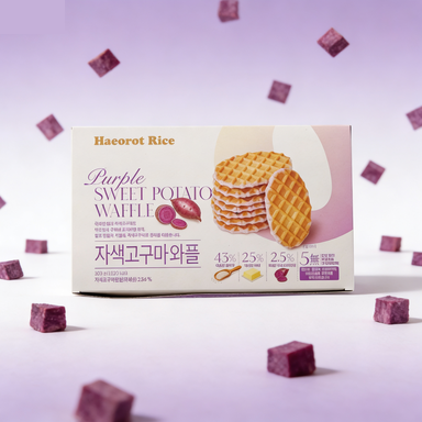 Waffles de Arroz Coreanos Haeorot con Camote Morado, Horneados sin Aceite, 18g × 20 Unidades, Postre, Snack Dietético, Portátil