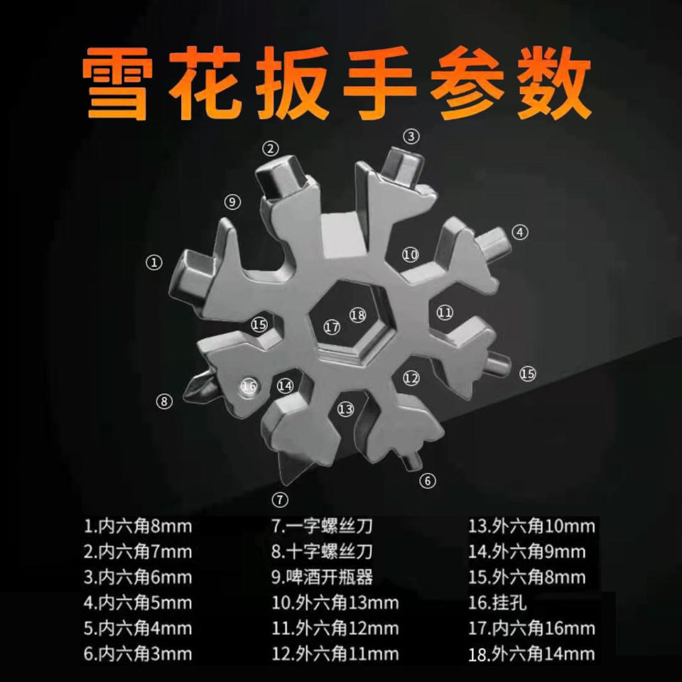 Herramienta Multiusos Haihua Snowflake 18 en 1 de Acero Inoxidable, Llave de Supervivencia para Exteriores, Portátil, Ajustable, de Alto Torque