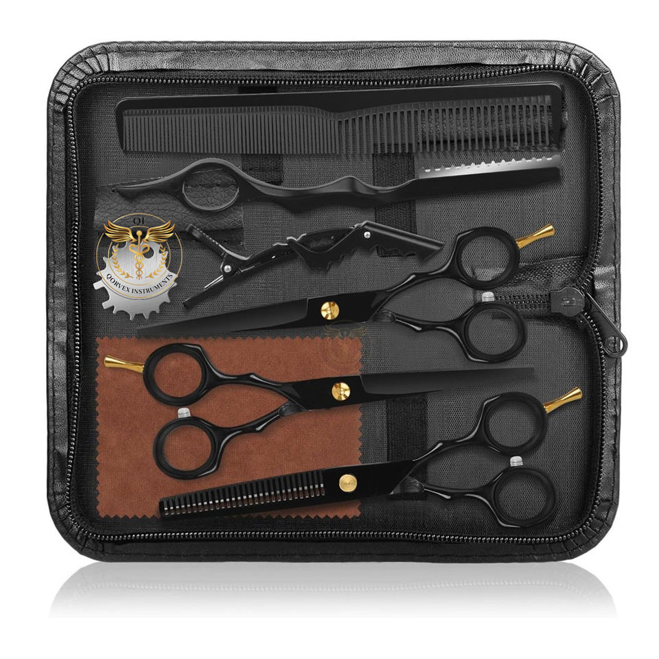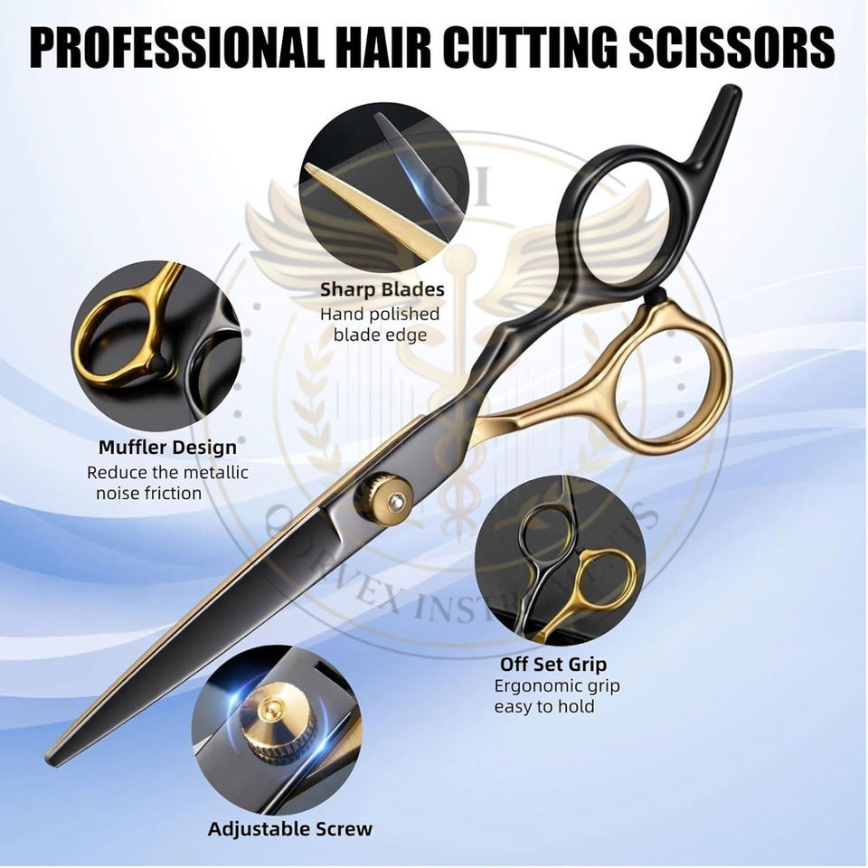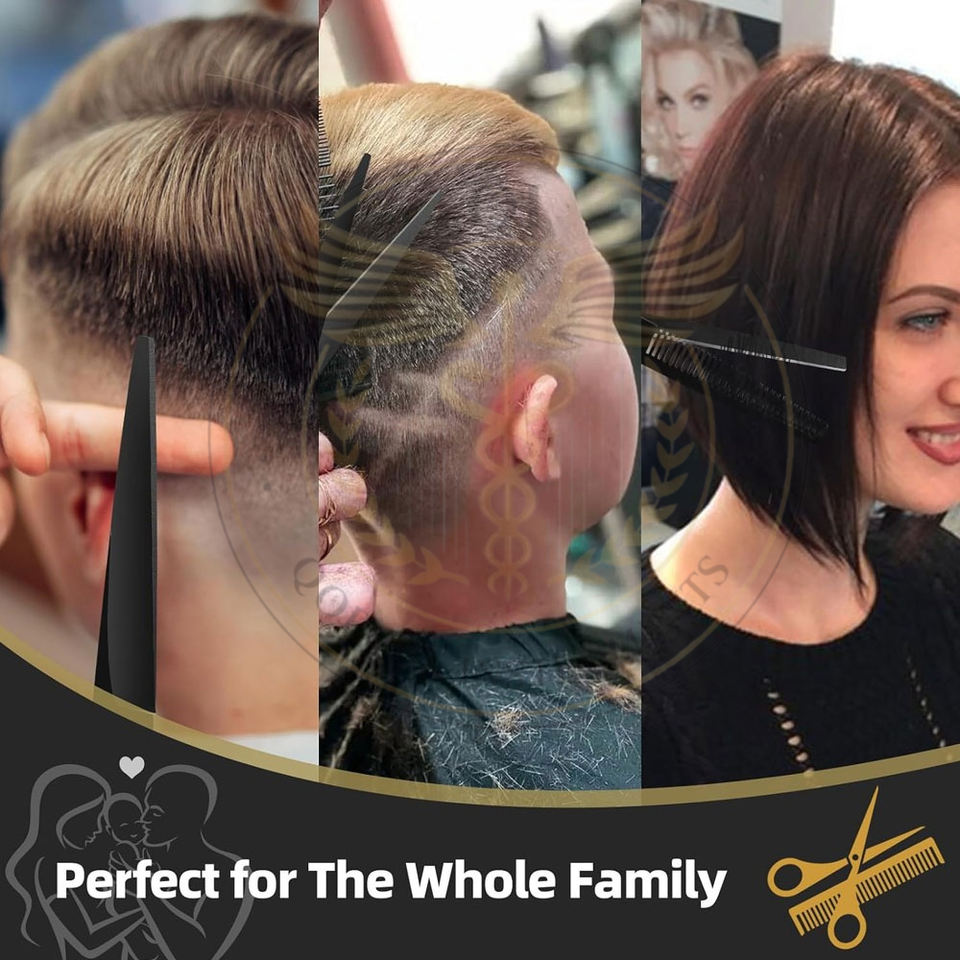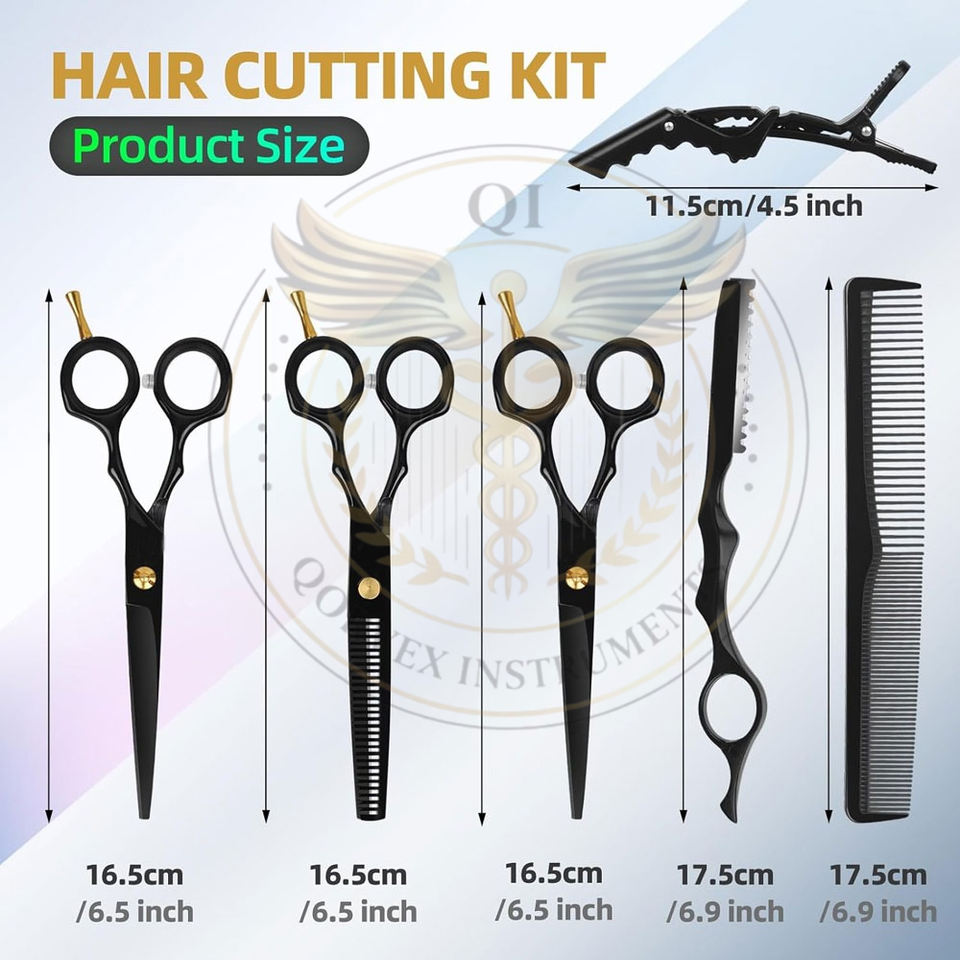 Kit de tijeras para cortar cabello, 9 piezas, juego de tijeras profesionales para cortar cabello, acero inoxidable, para uso doméstico, en salones y barberías, negro y dorado