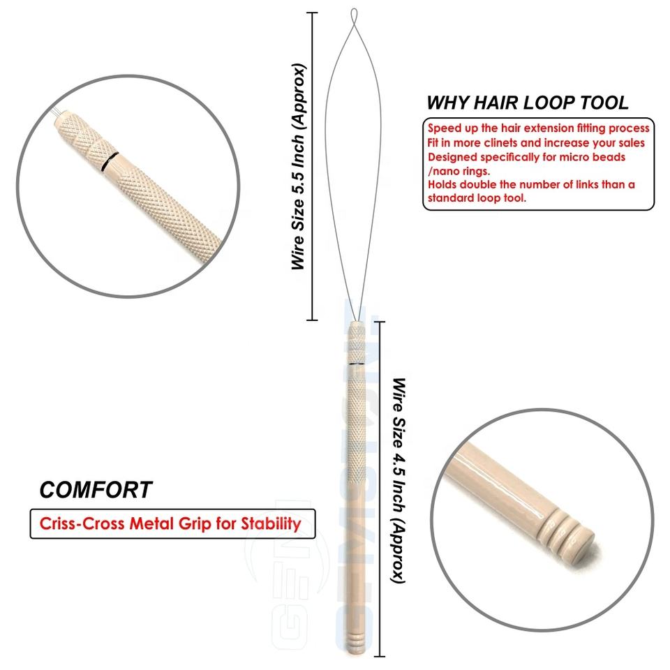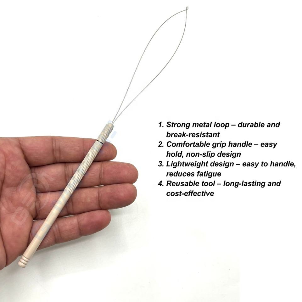 Herramienta para extensión de cabello con anilla de tracción para instalación de microanillos y nanoperlas – Aguja de tracción de acero inoxidable con agarre antideslizante