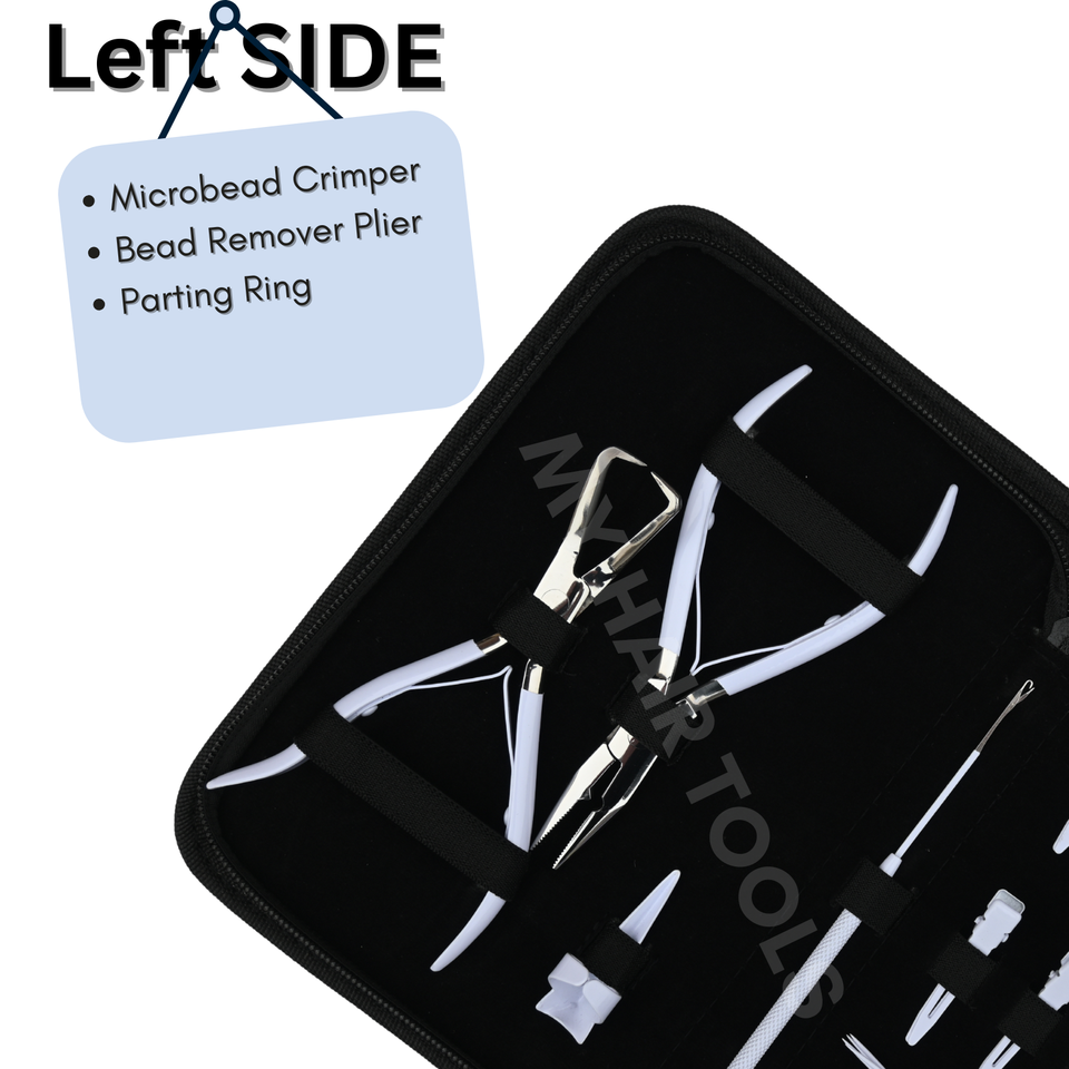 Herramientas para extensiones de cabello blanco, kit de extensiones de cabello con microperlas