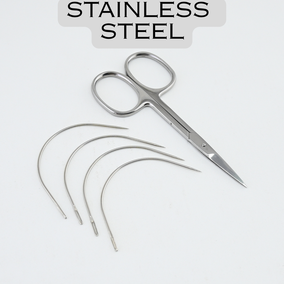 Tijeras Cortadoras de Hilo para Extensiones de Cabello con Kit de Tejido, Agujas Curvas para Coser, Herramientas de Salón de Acero Inoxidable