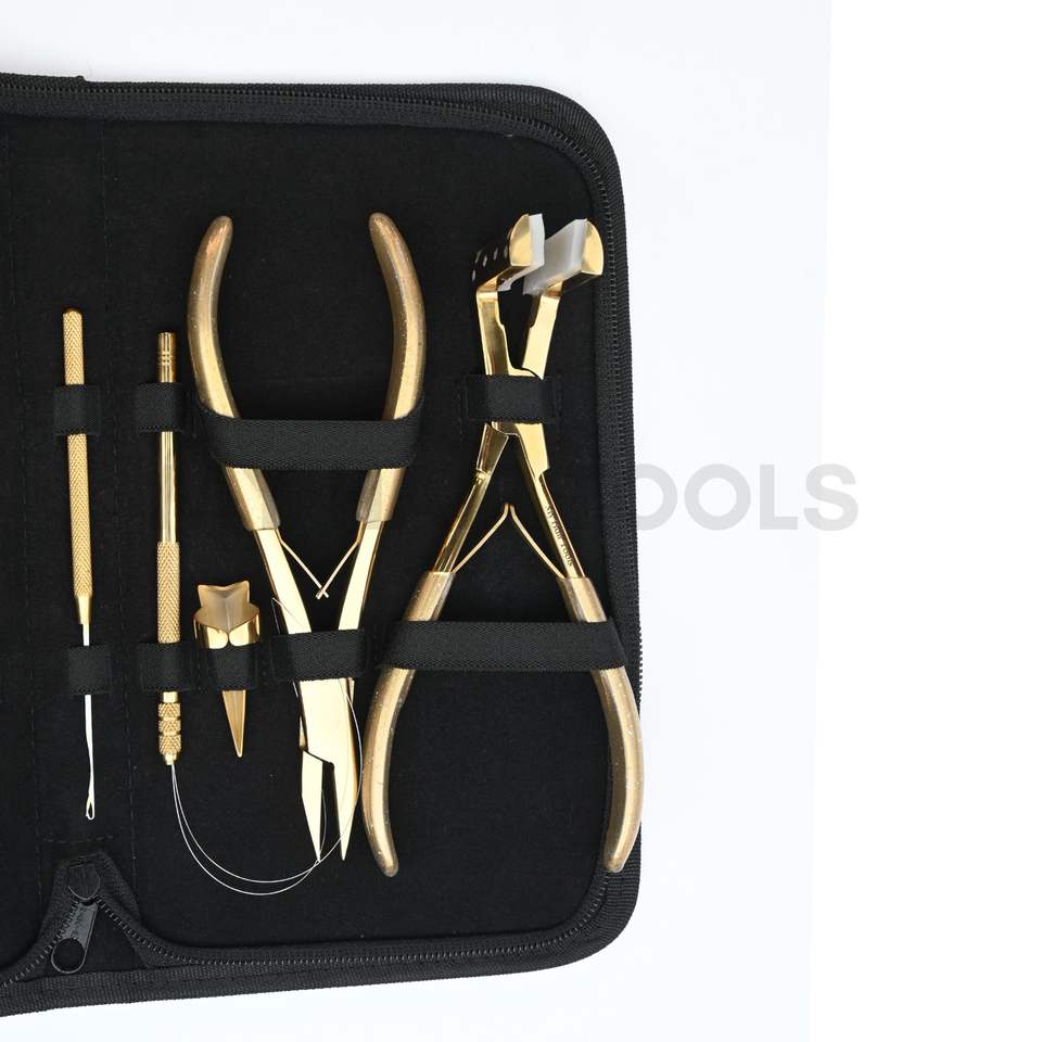 Kit de herramientas para extensiones de cabello: Alicates de engarzado para micro anillos, pinzas de seccionamiento.