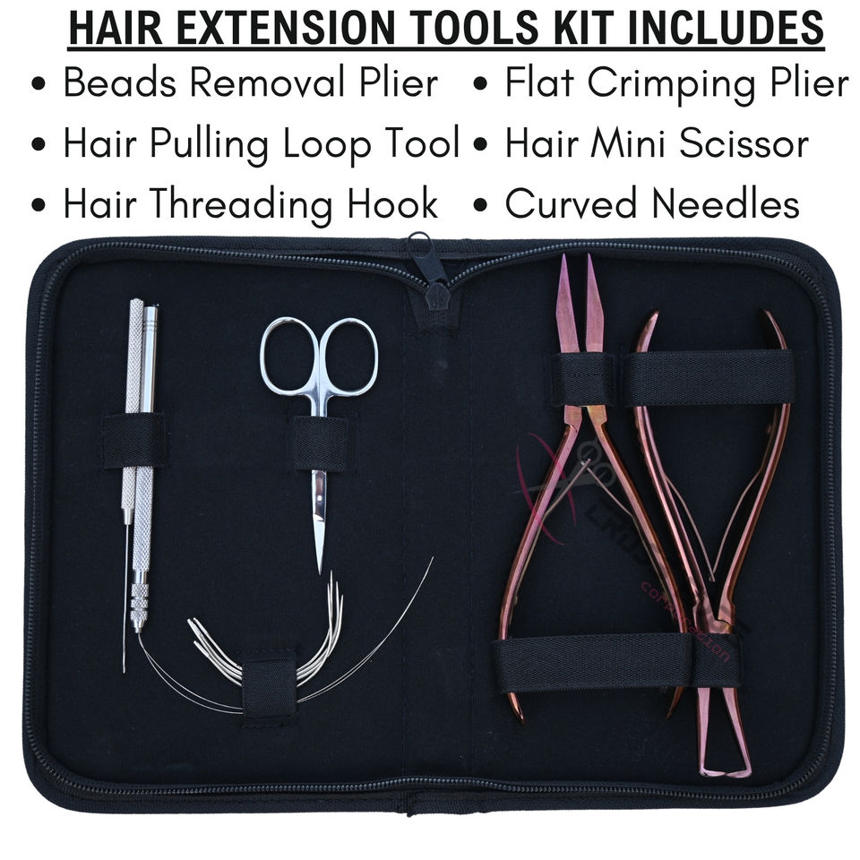 Kit de herramientas para extensiones de cabello con alicates pequeños para extensiones de cabello de 7 pulgadas
