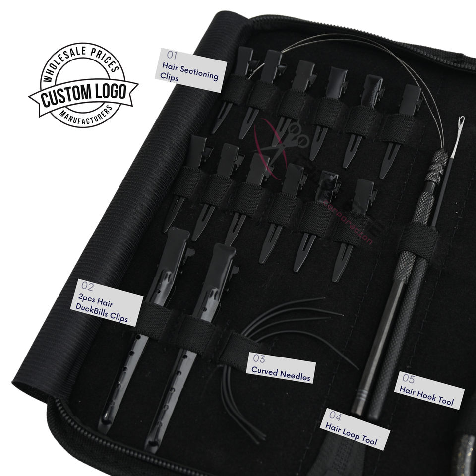 Embalaje:Acepta Kit de Herramientas para Extensiones de Cabello con Empaque Personalizado y Clips de Estilismo, Ofertas de embalaje personalizado: Gancho de engarzado de cuentas planas negras