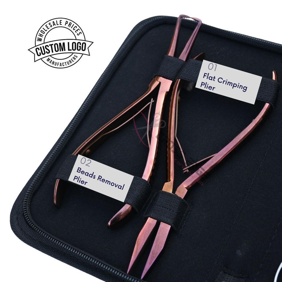 Extensiones de cabello - Kit de accesorios para técnicos con agujas de extensión en forma de C, Salón de Belleza Peluquería Alicates de Alta Resistencia de 7 Pulgadas para Extensiones de Cabello