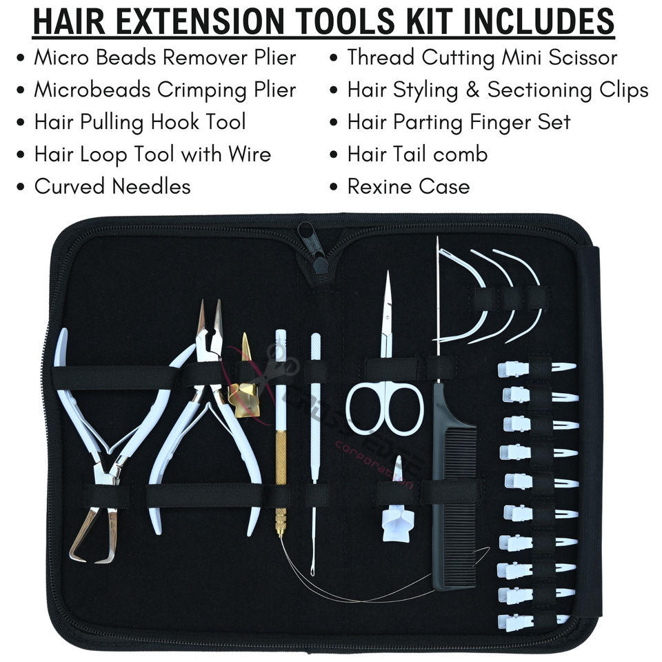 Kit de Herramientas para Extensiones de Cabello con Alicates para Remover Microperlas, Alicates para Extensiones de Cinta Adhesiva, Agujas Curvas, Tijeras para Cortar Hilo y Pinzas de Seccionamiento