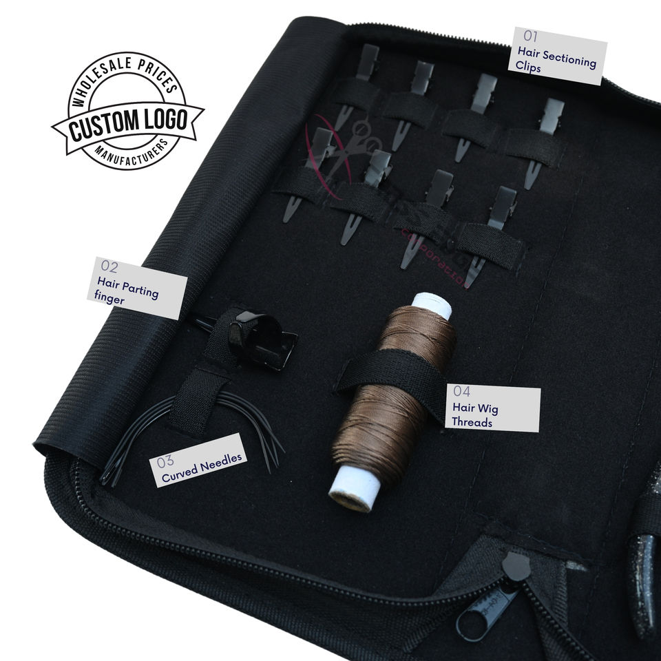 Kit de herramientas para extensiones de cabello con pinzas de cinta y clips de pico de pato negros