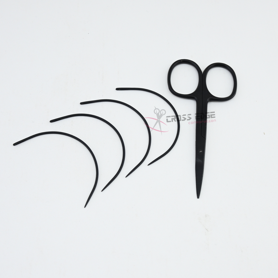 Juego de Agujas Curvas para Instalación de Extensiones de Cabello con Tijeras de Corte de Precisión para Herramientas de Tejido