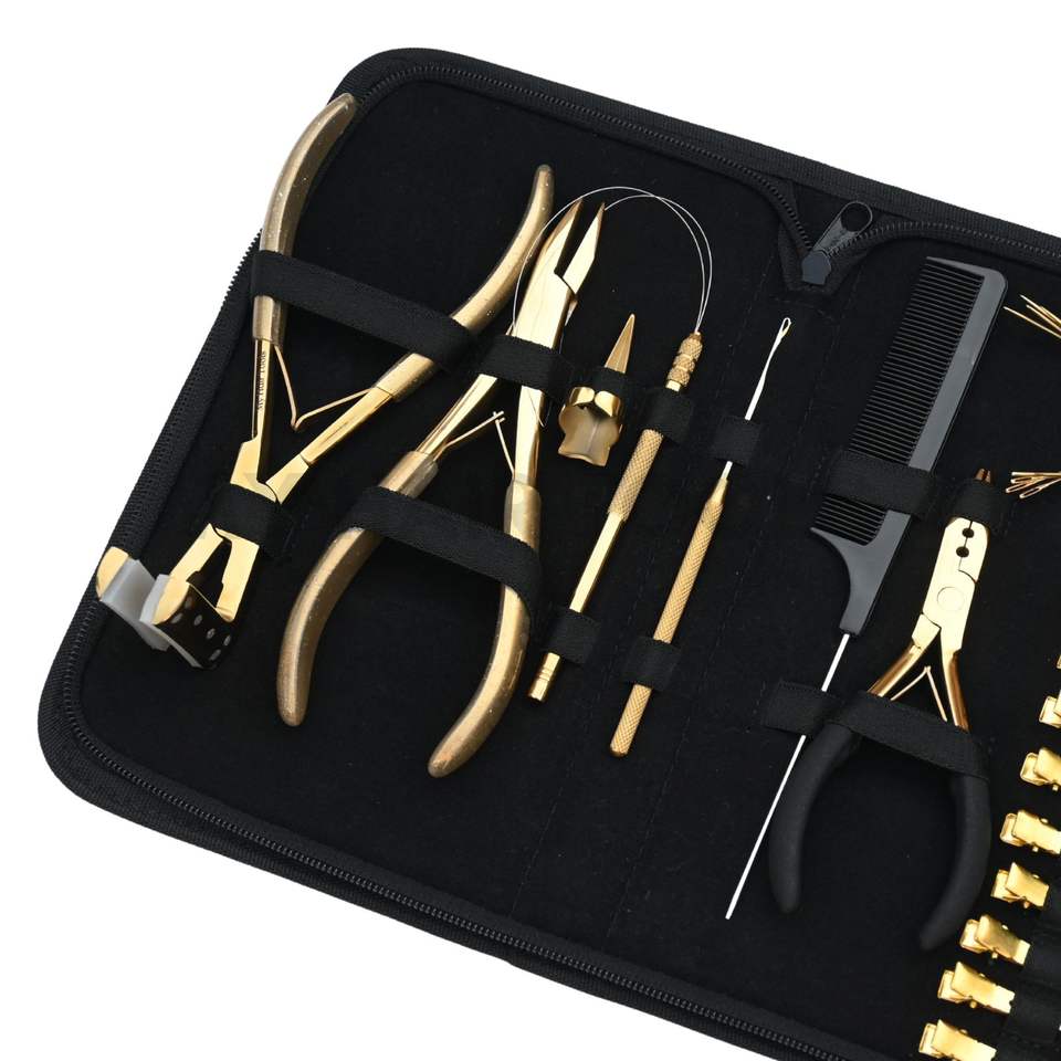 Palabras clave:Kit de herramientas para extensiones de cabello: Alicates de engarzado para micro anillos, pinzas de seccionamiento.