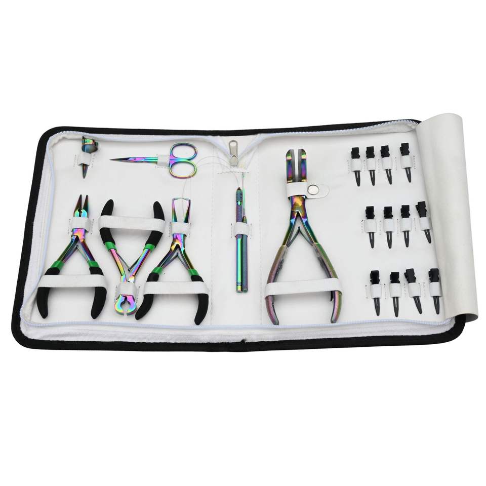 Color de la piel:Kit de herramientas personalizadas para extensiones de cabello de color, alicates de microanillo