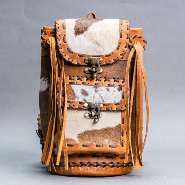 Mochila De piel de vaca con varios bolsillos, bolso de viaje, de piel de vaca