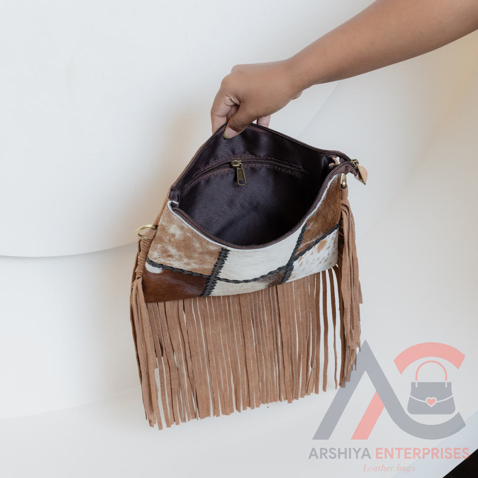 Product name:Hair On Cowhide Suede Leather Fringe Purse