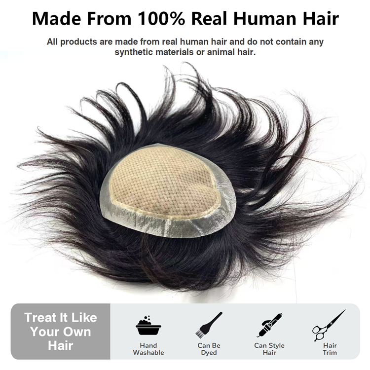Palabras clave:Pelucas de cabello humano para hombres, peluca con pegamento para hombres, peluca de cabello humano para hombres