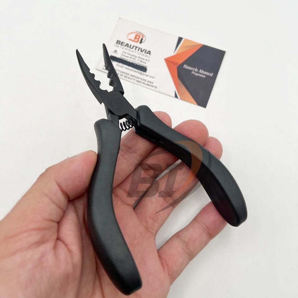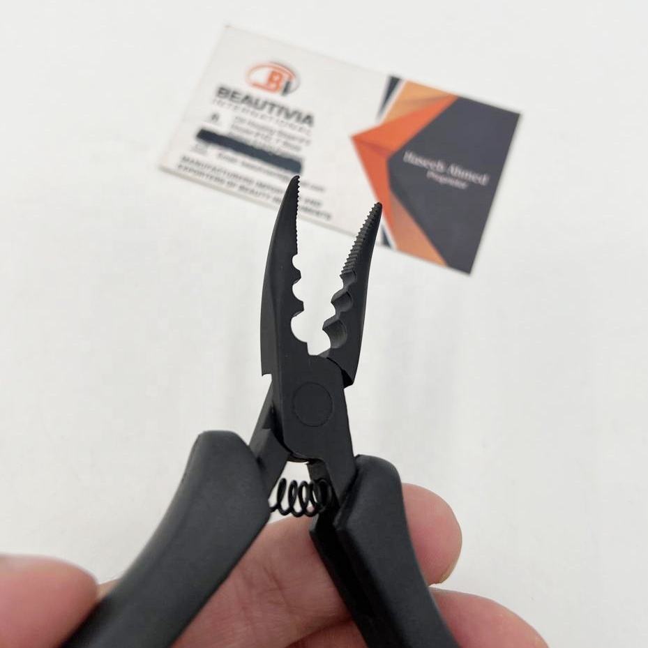 Pinzas para Cabello con Cabeza Curva y Dientes, 3 Agujeros, para Microperlas, Anillos, Extensiones de Cabello con Plumas, Servicio OEM