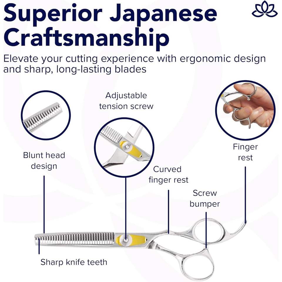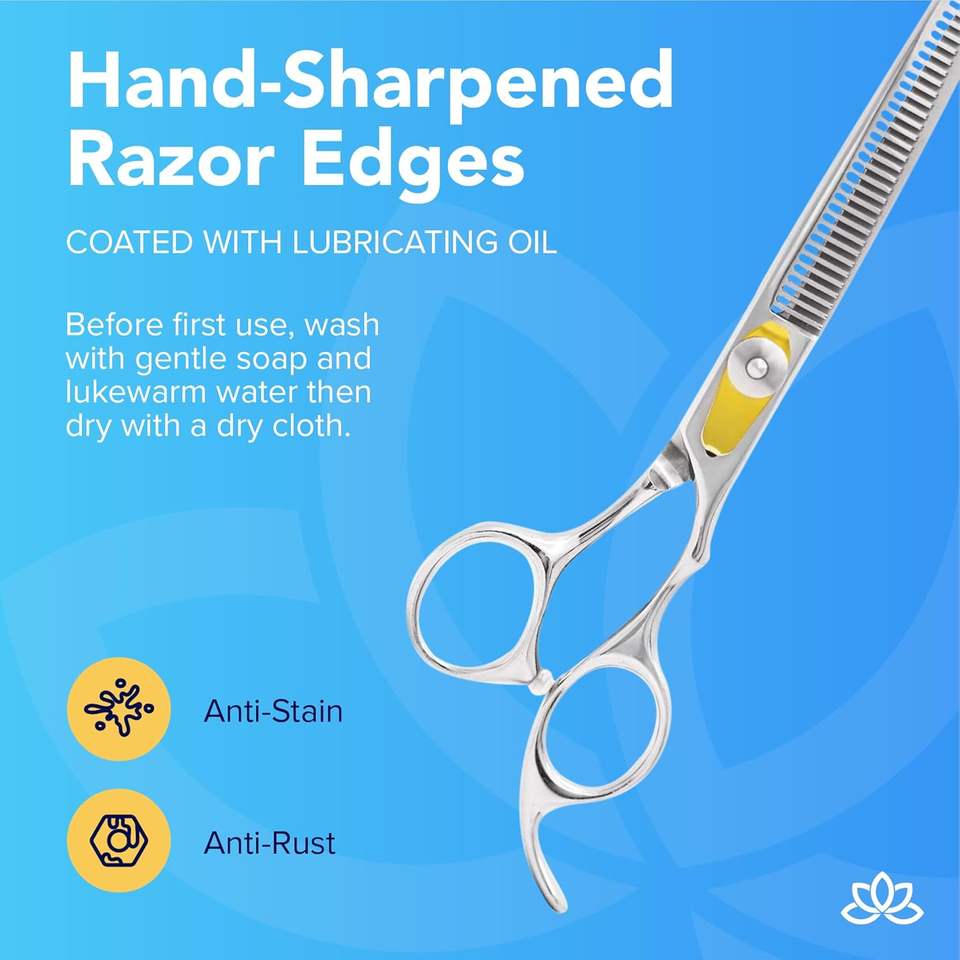 Tijeras de peluquería para diestros de 8.34 pulgadas, para entresacar, con hoja de acero inoxidable de borde afilado tipo cuchilla de afeitar, 30 dientes y mango largo